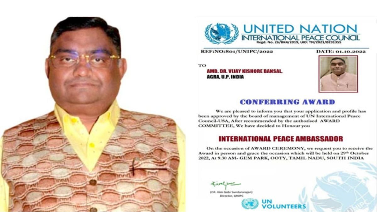 आगरा। ताज नगरी के जाने-माने उद्योगपति व समाजसेवी डॉ. विजय किशोर बंसल ने समाज सेवा के क्षेत्र में वर्ल्ड बुक ऑफ रिकार्ड में दर्ज किया है। वह दशकों से राष्ट्रीय स्वयंसेवक संघ से जुड़े हुए हैं। यहीं से उन्हें समाज के लिए कार्य करने की प्रेरणा मिली। कोविड के दौरान 25 लाख फूड पैकेट बांटने पर उनका नाम वर्ल्ड बुक रिकॉर्ड में दर्ज किया गया।
