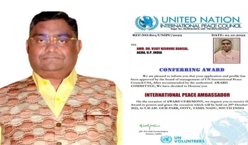आगरा। ताज नगरी के जाने-माने उद्योगपति व समाजसेवी डॉ. विजय किशोर बंसल ने समाज सेवा के क्षेत्र में वर्ल्ड बुक ऑफ रिकार्ड में दर्ज किया…